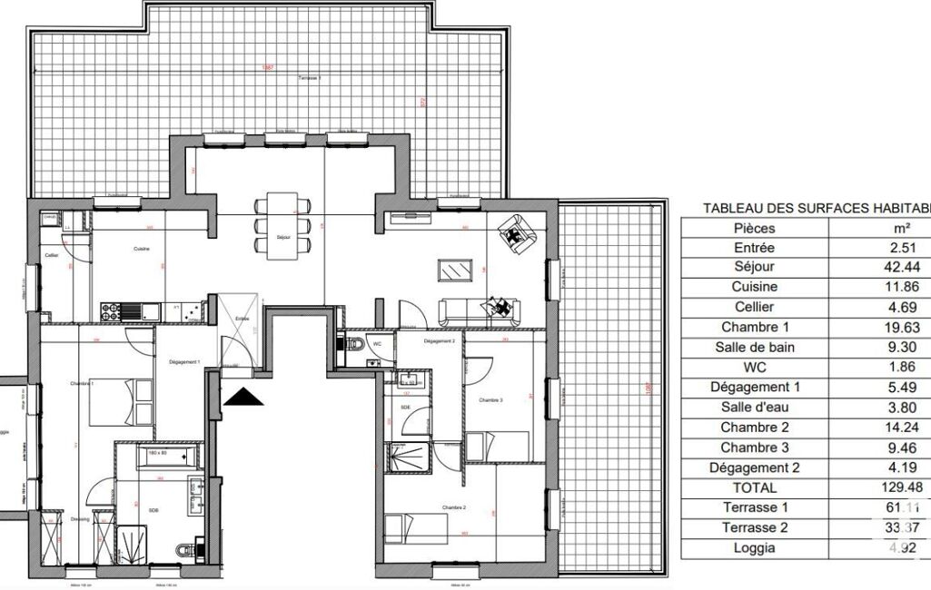 - Surface habitable : 129 m²