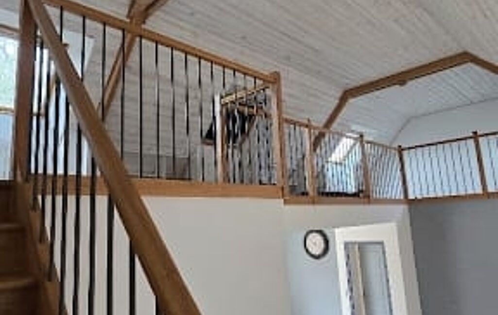 A l'étage, la grande mezzanine baignée de lumière est un véritable atout. Elle offre aujourd'hui un bel espace de détente, mais peut très facilement être transformée pour accueillir 2 chambres supplémentaires et une salle d'eau. La maison grandit avec vos besoins !