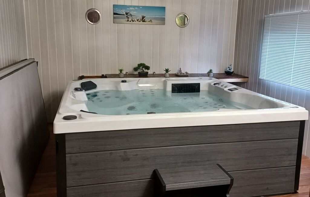 Une deuxième dépendance dédiée au lâcher-prise avec SPA et espace douche est accessible depuis le jardin.