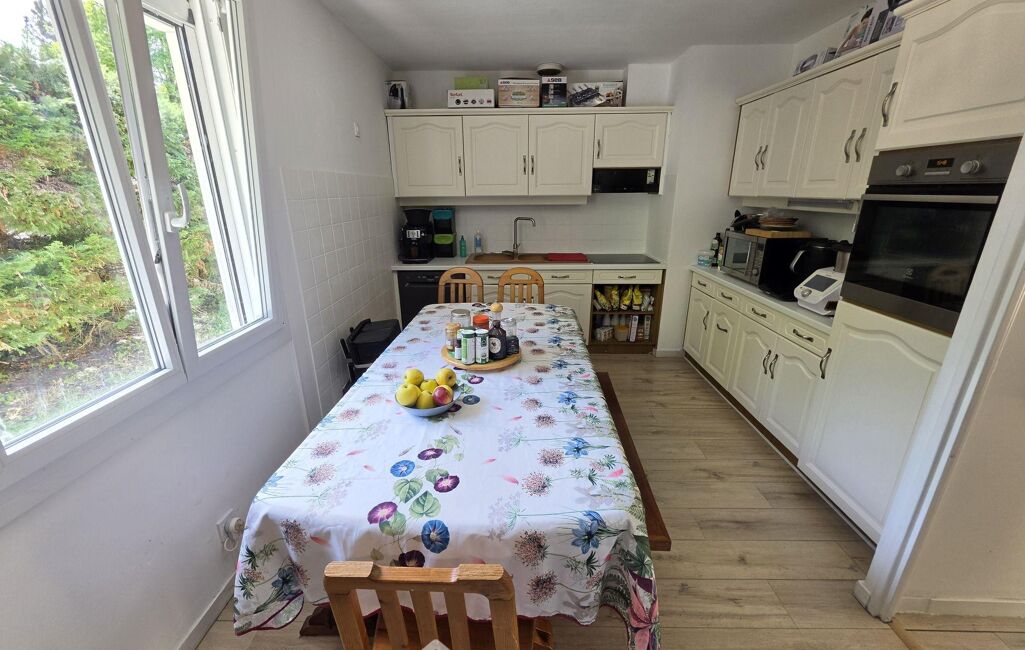 Salon-séjour, cuisine indépendante, trois chambres, un bureau, salle d'eau et WC indépendant.