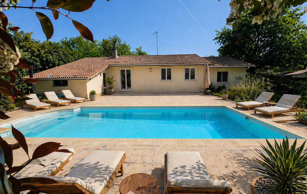 Votre agence 123webimmo vous présente : Au Pian-Médoc, proche écoles et commodités, beaucoup d'atouts pour cette maison de trois chambres avec piscine et au calme !!