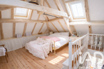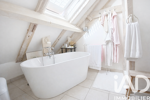 A l'étage, vous trouverez 2 jolies chambres avec poutres apparentes et une salle de bain avec baignoire, douche et WC.