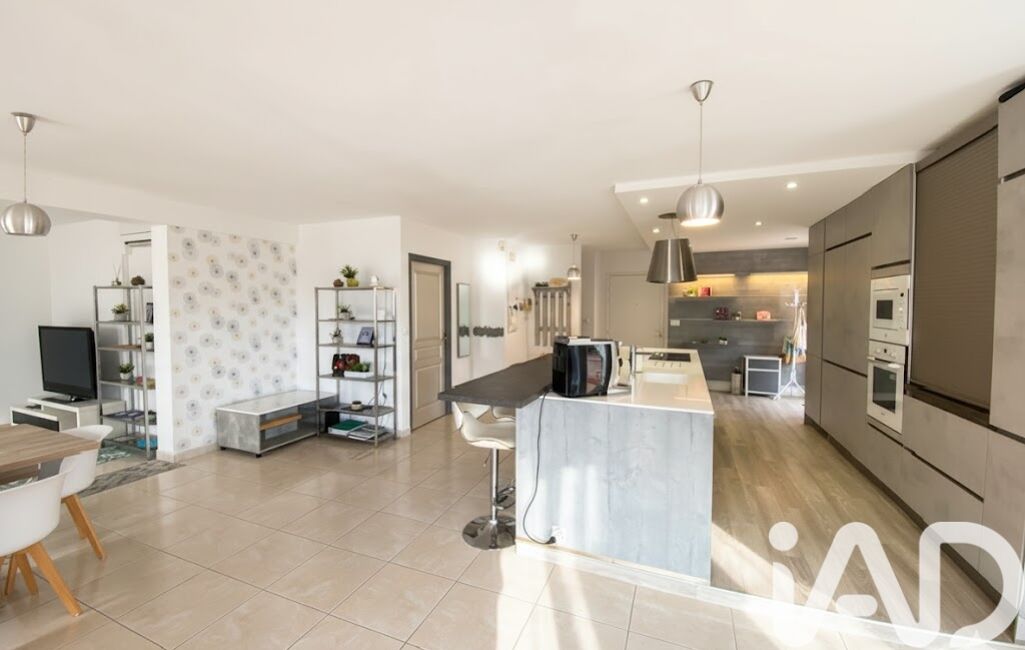 Spacieux salon-séjour baigné de lumière avec cuisine ouverte entièrement aménagée et équipée,