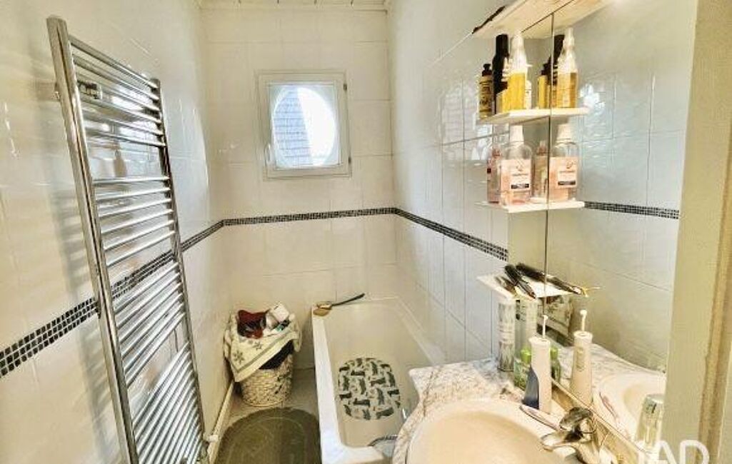 Grand garage de 25 m2 environ avec une pièce au dessus déjà aménagé en studio, C/C Gaz de ville, belle terrasse de 25 m2 environ, appentis, huisseries en pvc double vitrage, tout à l’égout raccordé, terrain clos de murs de 108 m2 environ.