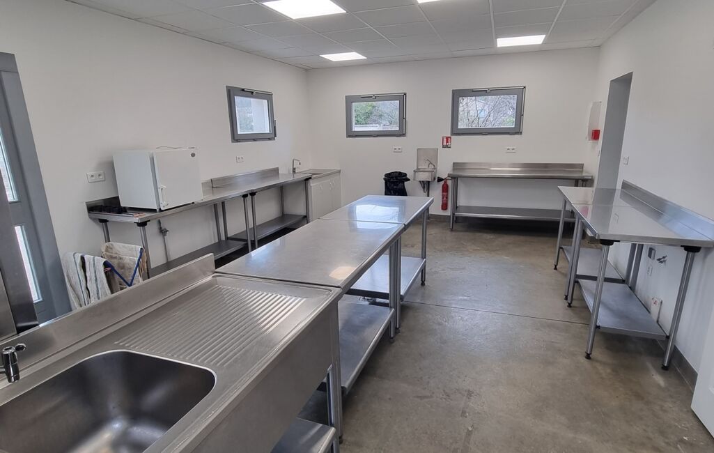 L’ensemble comprend une grande salle de 200 m² (le Kiosque), accessible PMR, avec espace de remise en température , deux salles annexes de 50 et 55 m² (salles Zen et Bleue), dont une avec cuisine, terrasse et salle d’eau , un espace extérieur type guinguette avec barbecue , un studio PMR indépendant , un appartement de 50 m² avec cuisine et salle d’eau , un bureau à l’étage , un garage, un local vélos, de larges zones de stationnement, et des aménagements PMR sur l’ensemble du site.