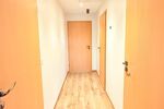 Une entrée accueillante desservant une salle à manger lumineuse avec cuisine ouverte, un WC ainsi qu’un palier menant à l’escalier.