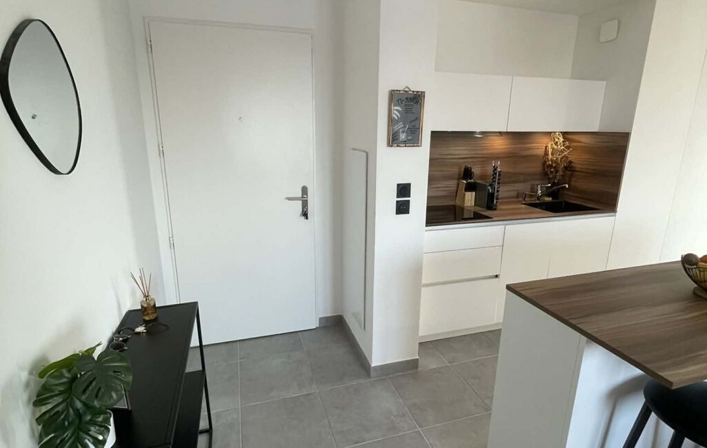 Dès l'entrée, vous serez séduit par l'espace de vie lumineux et fonctionnel offrant une cuisine équipée ouverte sur le séjour. Les deux chambres spacieuses vous offriront un confort optimal pour des nuits paisibles.