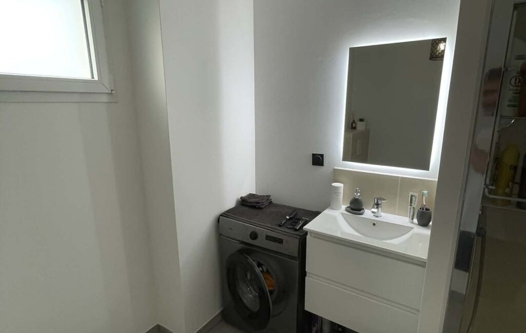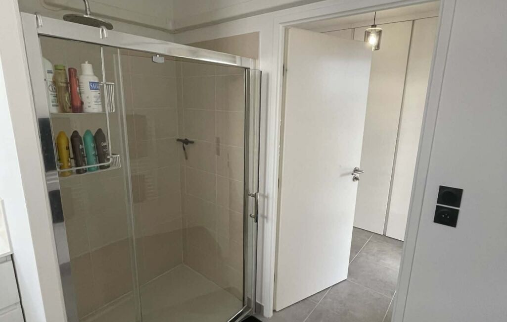 La salle d'eau comprend une douche moderne et pratique et un suspendu.