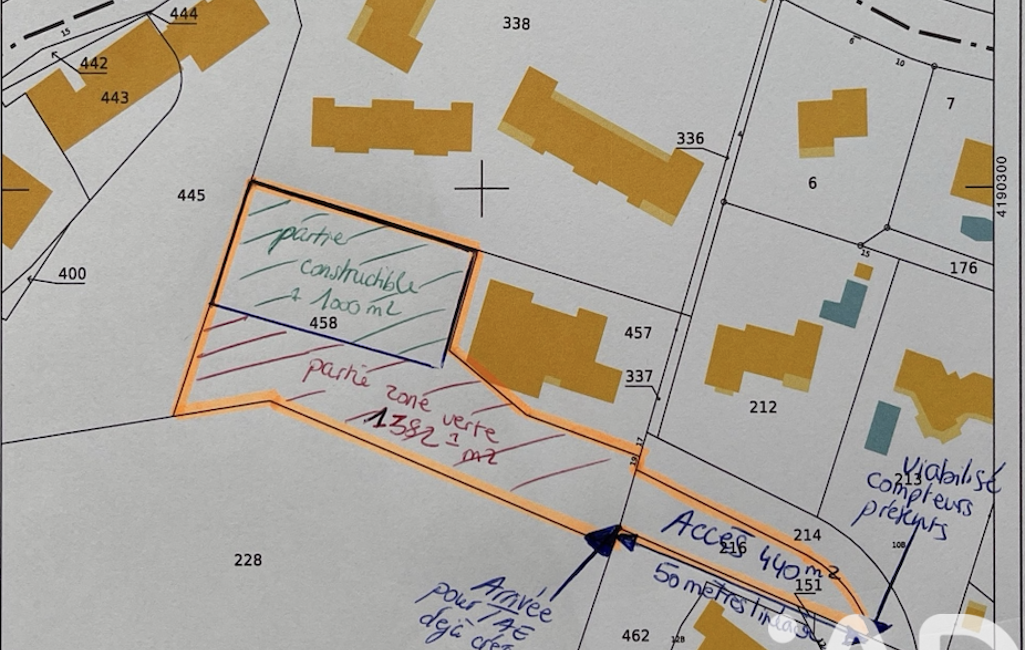 Terrain viabilisé en 3eme ligne de 3000 m2 env dont 440 d'accès, et dont 1000m2 de constructible.