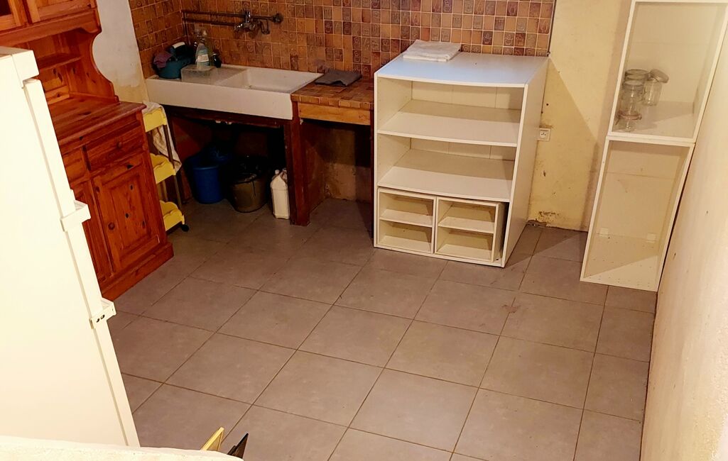 En rez-de-chaussée : une pièce pouvant servir de cuisine d’été, un cellier, une grande pièce polyvalente, une buanderie avec WC et un garage donnant sur une terrasse couverte.