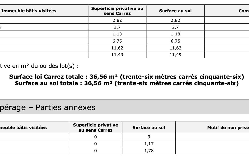 Surface loi Carrez : 36,56 m²