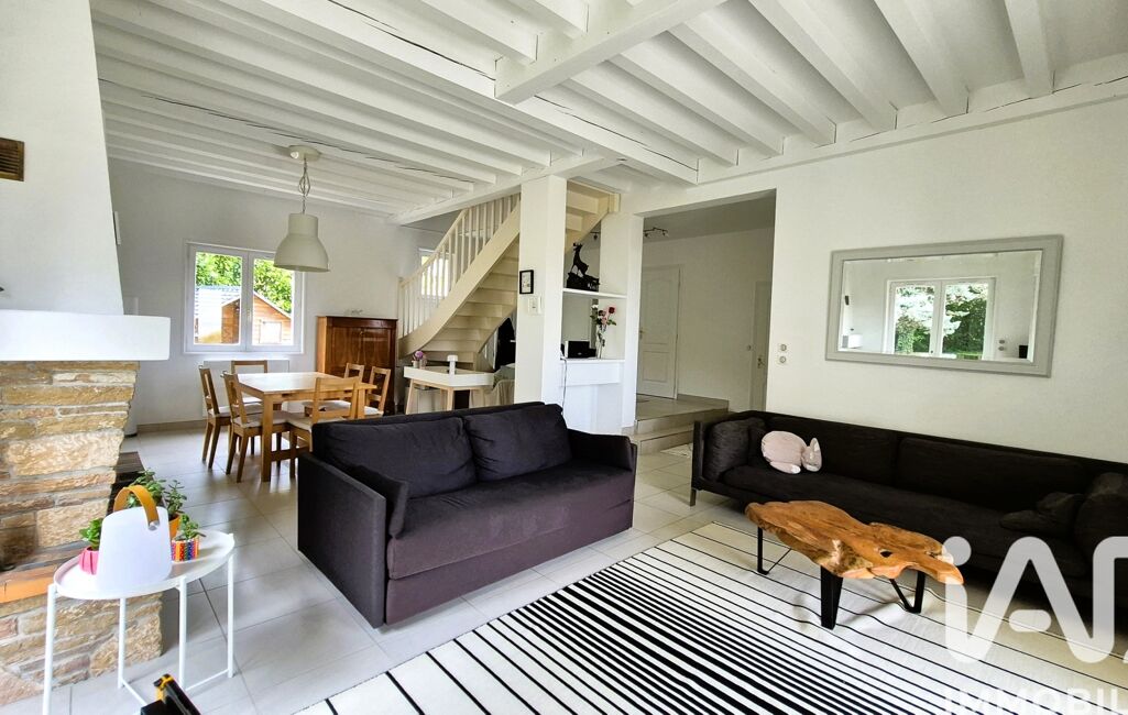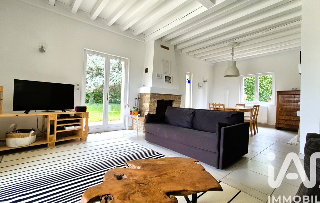 Un salon-séjour lumineux de 39 m², traversant, agrémenté d’une cheminée à insert