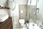 L’organisation des volumes est idéale avec ses cinq chambres réparties sur deux niveaux. Le rez-de-chaussée dispose de deux premières chambres avec placards, d’une salle de bain et de toilettes séparées. L’étage dessert une suite parentale complète avec dressing et salle d’eau privative avec WC, ainsi que deux autres grandes chambres et une seconde salle d’eau avec WC.