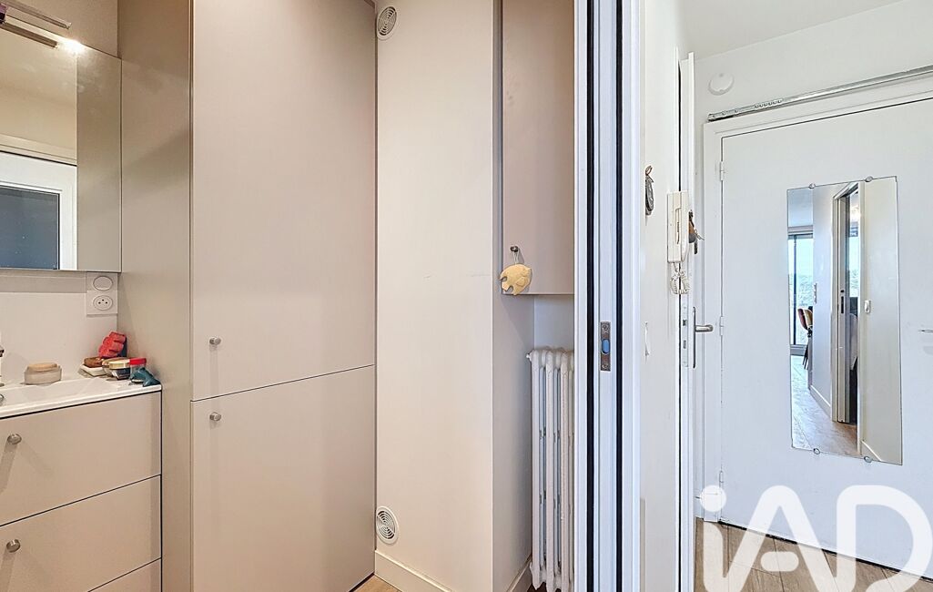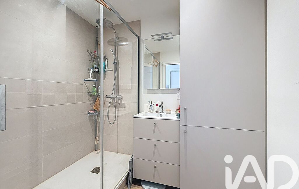 L’espace nuit se compose d’une chambre avec placards intégrés. La salle d’eau moderne dispose d’une douche à l’italienne, d’un lavabo, de rangements et d’un emplacement pour machine à laver. Un WC séparé complète l’agencement.