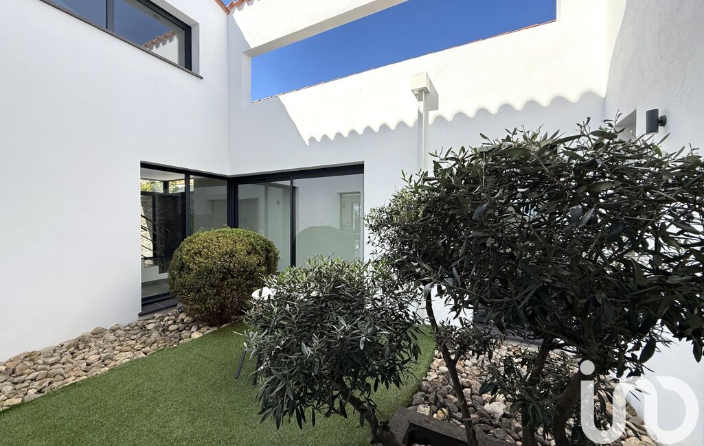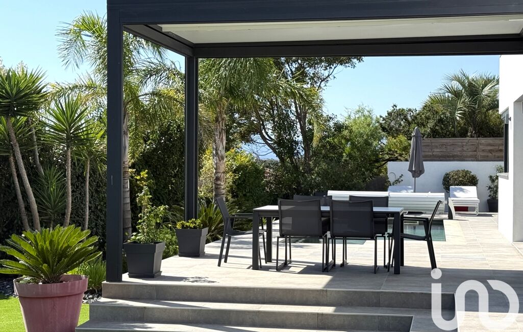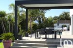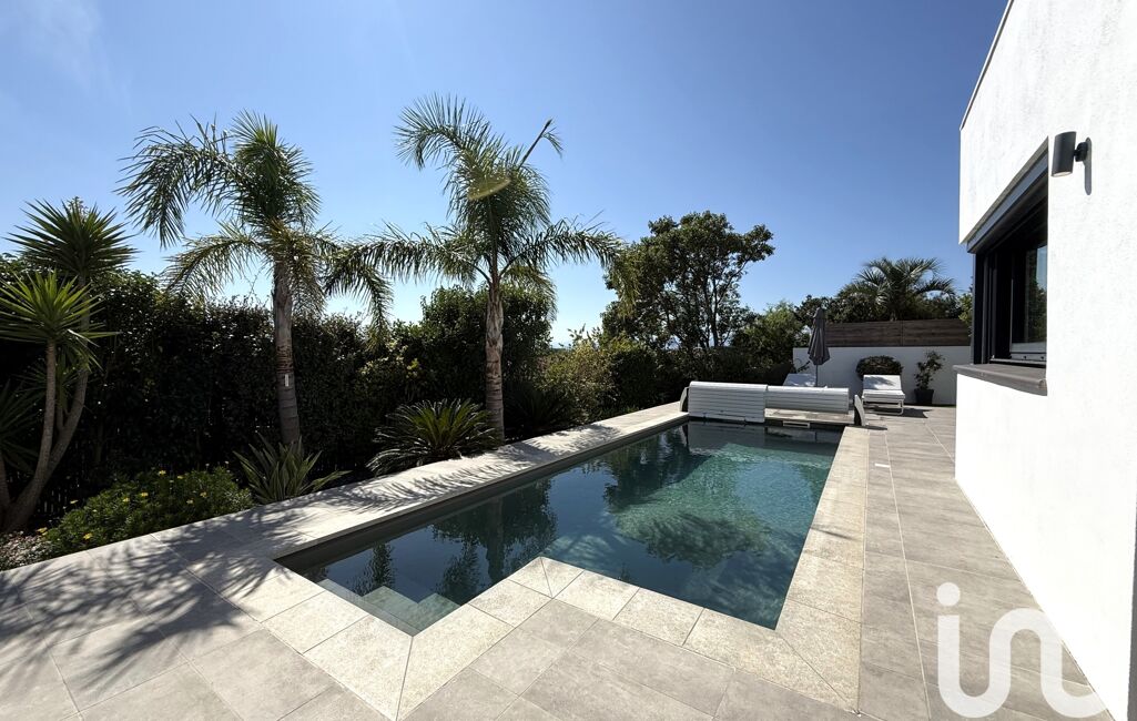 À l’extérieur, un jardin aux essences méditerranéennes entoure une piscine sans vis-à-vis, offrant un cadre intime et apaisant.