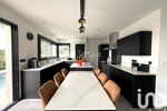 La cuisine ouverte, prolongée par un cellier, allie fonctionnalité et esthétisme.
