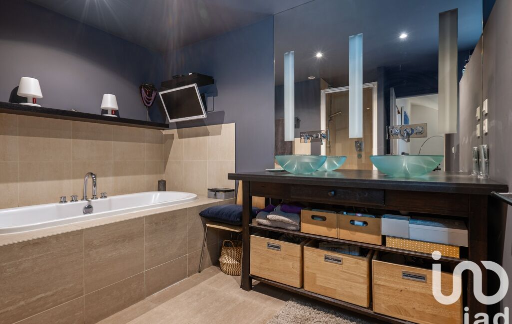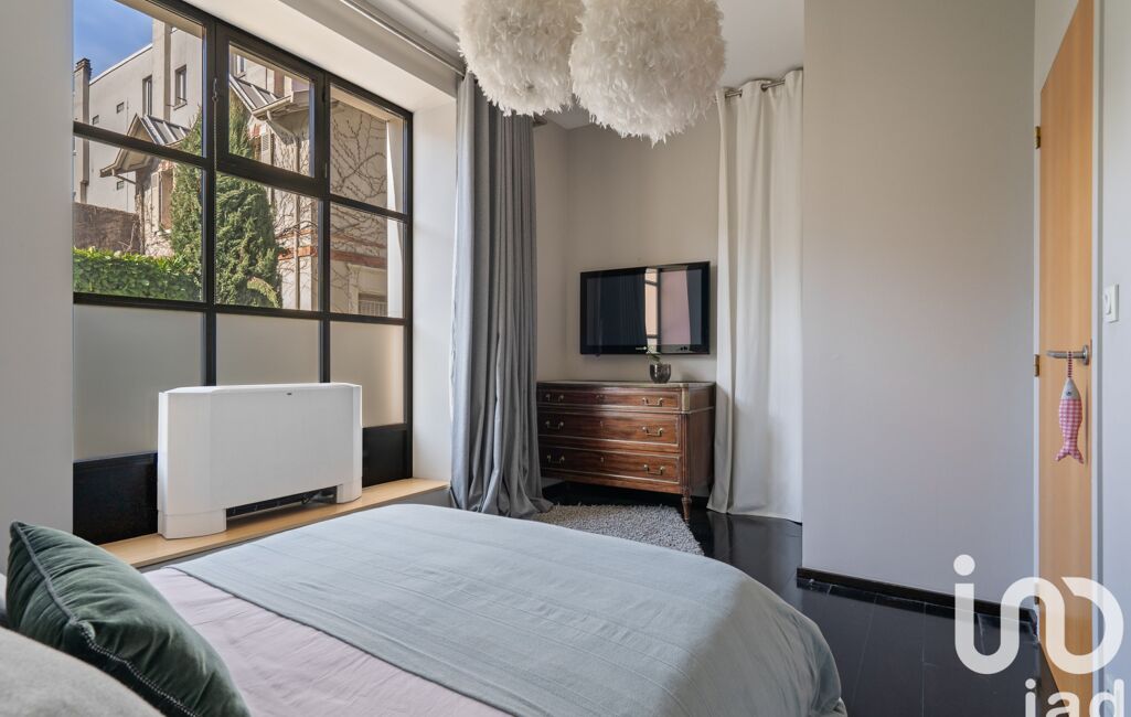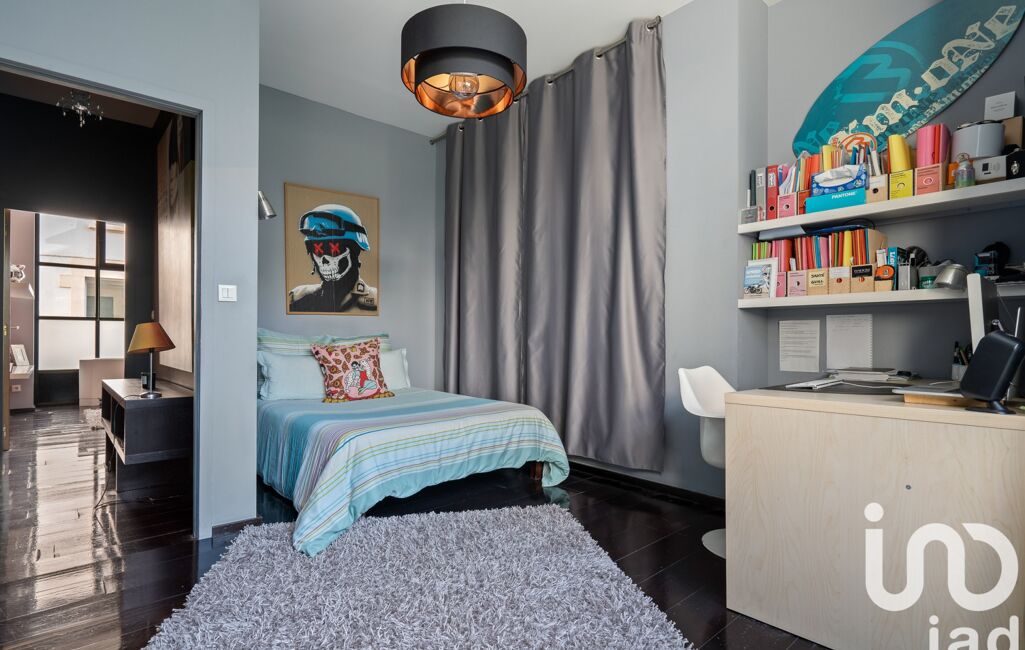 La partie nuit principale accueille trois chambres aux dimensions équilibrées (12 à 14 m²) ainsi qu’une vaste salle de bain. En contrebas, une suite parentale indépendante de plus de 60 m², avec dressing et salle de bain privative, compose un véritable cocon, à l’écart du reste du loft.