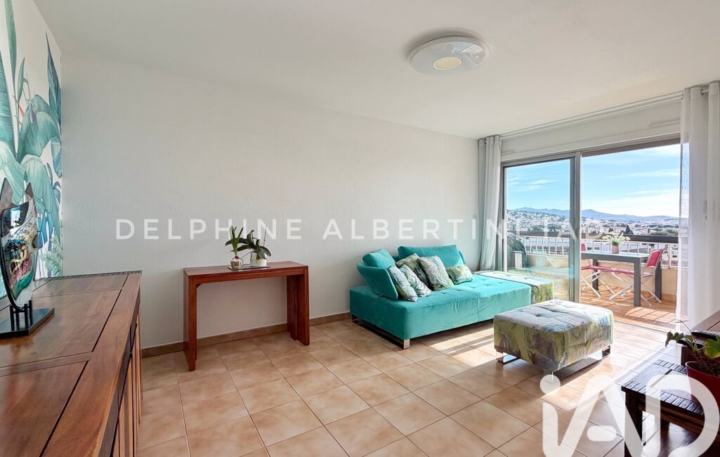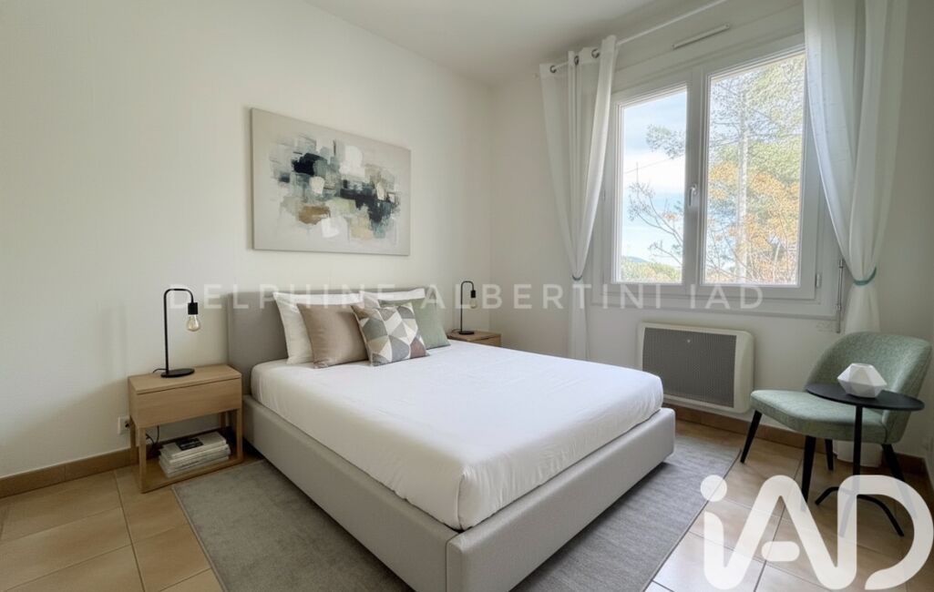 Le séjour s’ouvre sur une terrasse exposée plein sud de 9 m², sans aucun vis-à-vis, offrant une vue dégagée et imprenable sur l’île des Embiez. Un espace extérieur confortable permettant de recevoir aisément.