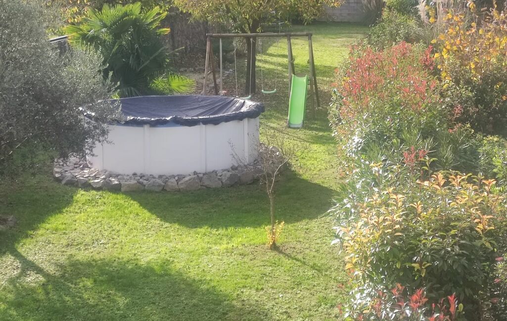 L’extérieur constitue également un atout majeur avec un terrain clos et arboré de 1 040 m² piscinable et constructible, réparti de part et d’autre de la maison.