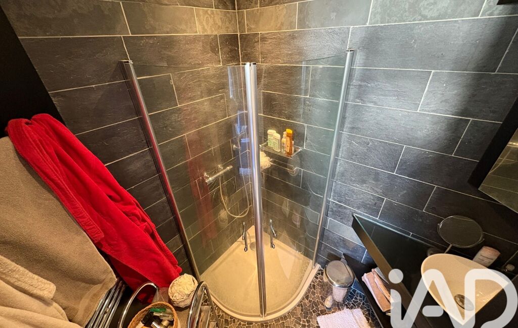 À gauche, une chambre de plain-pied avec sa salle d’eau attenante : un espace confortable, intime, idéal pour vivre au rez-de-chaussée ou recevoir.