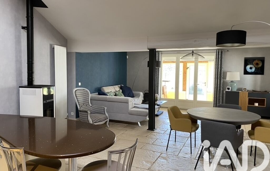 Entrée par véranda de 31 m2, sur une superbe pièce de vie de 56 m2 avec cuisine ouverte aménagée et équipée, dallage en pierres naturelles
