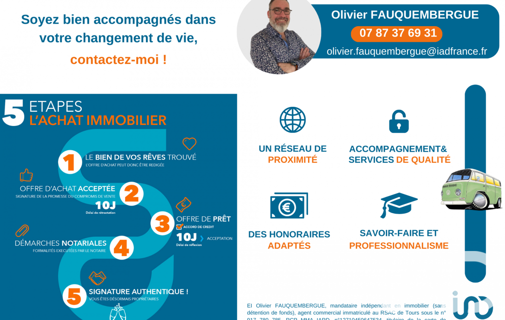 La présente annonce immobilière a été rédigée sous la responsabilité éditoriale de M Olivier Fauquembergue mandataire indépendant en immobilier (sans détention de fonds), agent commercial de la SAS I@D France immatriculé au RSAC de TOURS sous le numéro 917780785, titulaire de la carte de démarchage immobilier pour le compte de la société I@D France SAS.