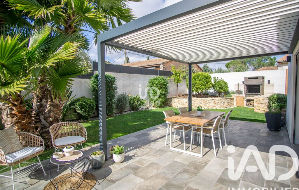 À l’extérieur, profitez d’un jardin arboré avec arbres fruitiers, d’une terrasse avec pergola bioclimatique, d’une cuisine d’été aménagée et d’une piscine traditionnelle sécurisée.