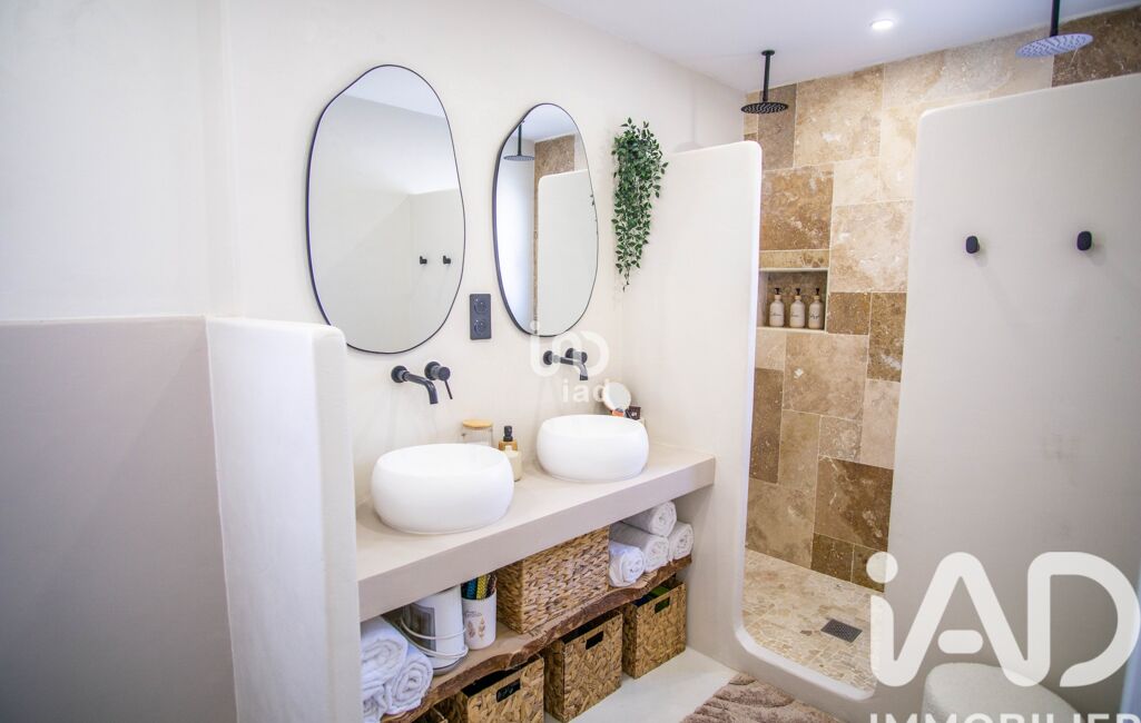 À l’étage, l’espace nuit propose trois belles chambres avec dressings, dont une avec douche italienne privative. Une élégante salle de bain avec douche à l’italienne, double vasque et WC vient parfaire cet espace.