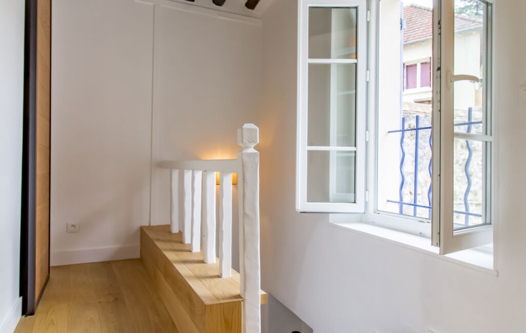 1ER ÉTAGE : couloir desservant deux chambres, WC indépendant et salle d’eau.