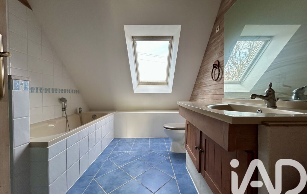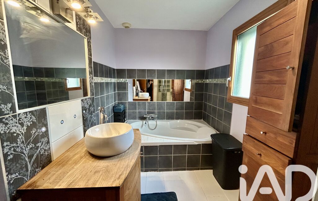 À l’étage, une vaste mezzanine dessert trois belles chambres et une salle d’eau avec douche et baignoire avec WC.