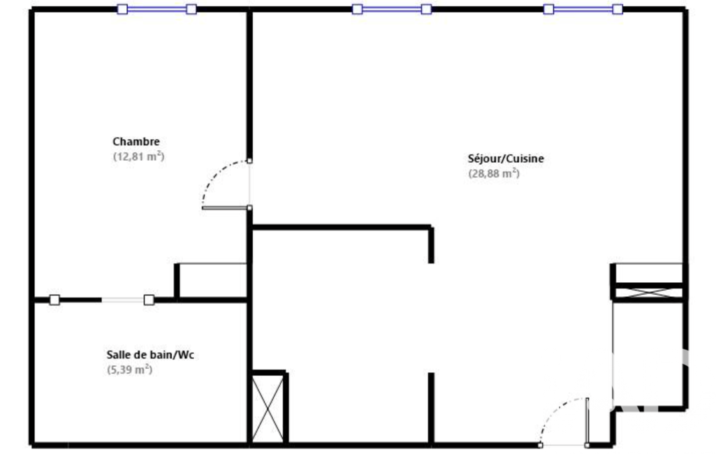 Le logement offre une vaste pièce de vie de 29m2 environ avec un coin entrée et placard intégré, cuisine aménagée et équipée et un agréable séjour. La chambre spacieuse est dotée d'un dressing et se complète d'une salle de bain avec toilettes.