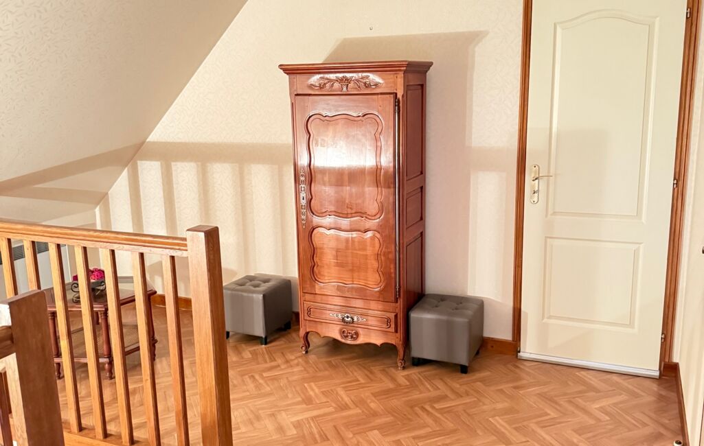 À l'étage, un palier/dégagement ouvre sur quatre belles chambres qui offrent des espaces de vie privilégiés pour toute la famille, une salle d'eau équipée d'un toilette et une pièce de stockage.