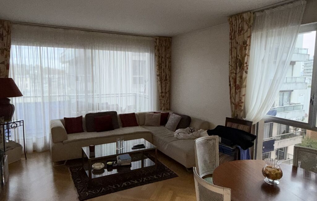 Situé au 7ᵉ étage d’un immeuble des années 70, cet appartement de 96 m² offre de beaux volumes et une distribution fonctionnelle.