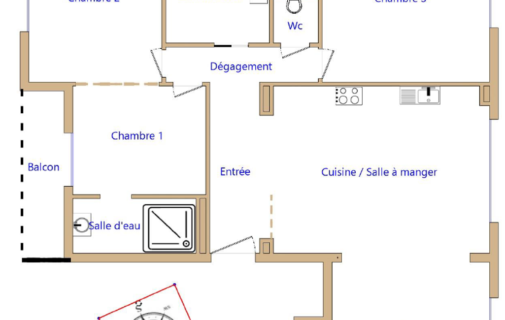 - Nbre. de chambres : 3