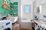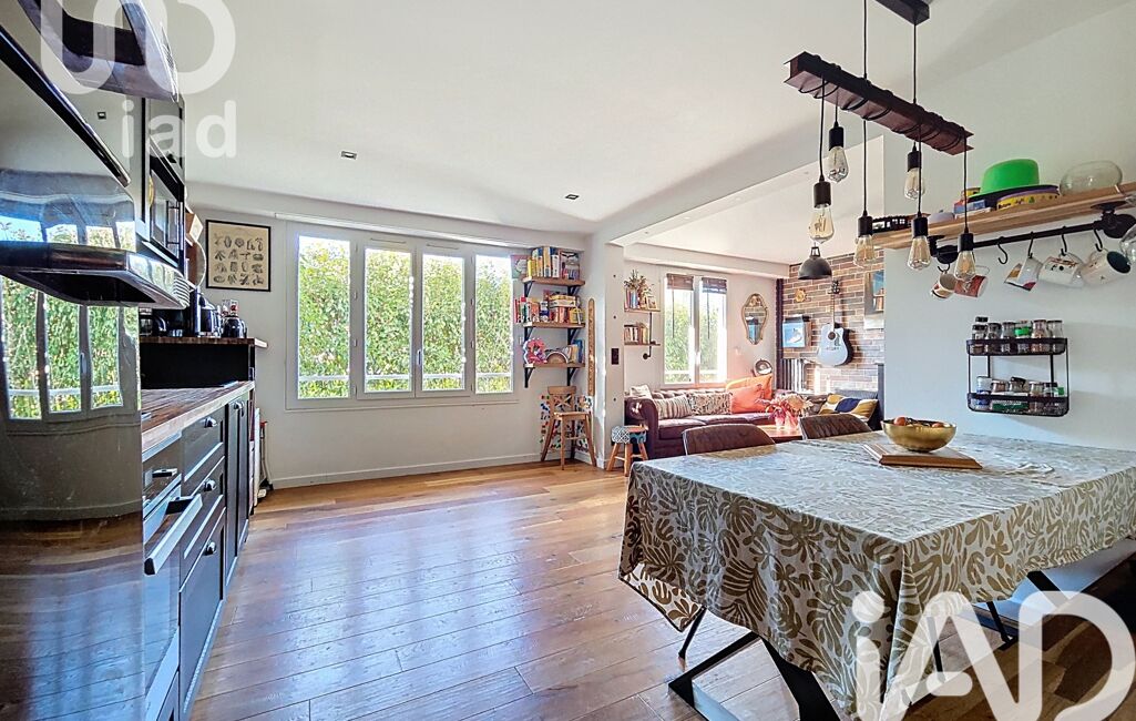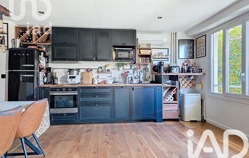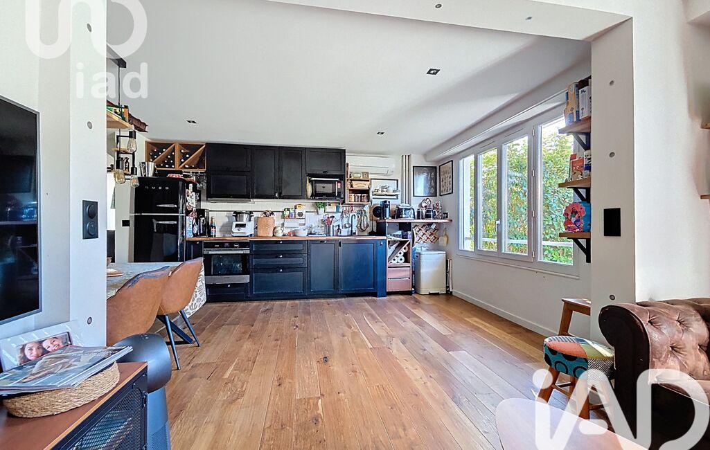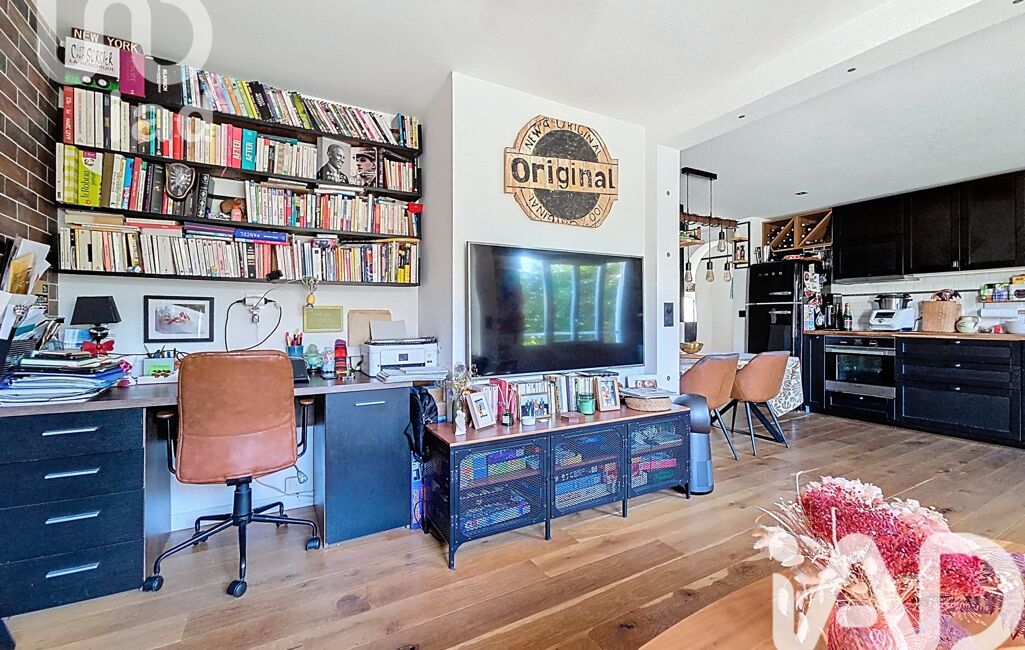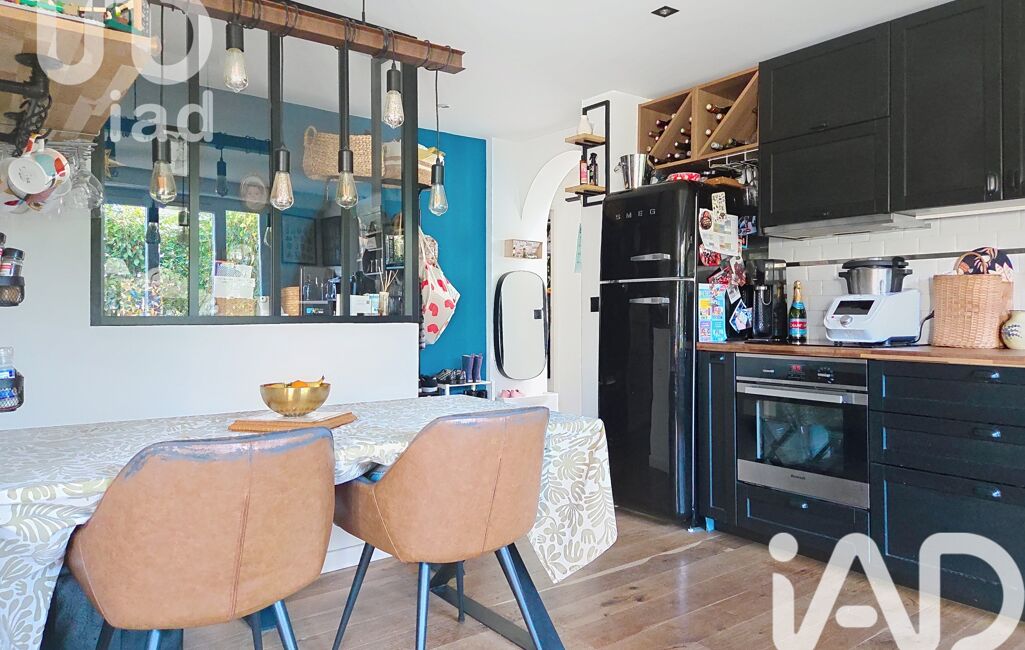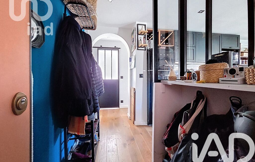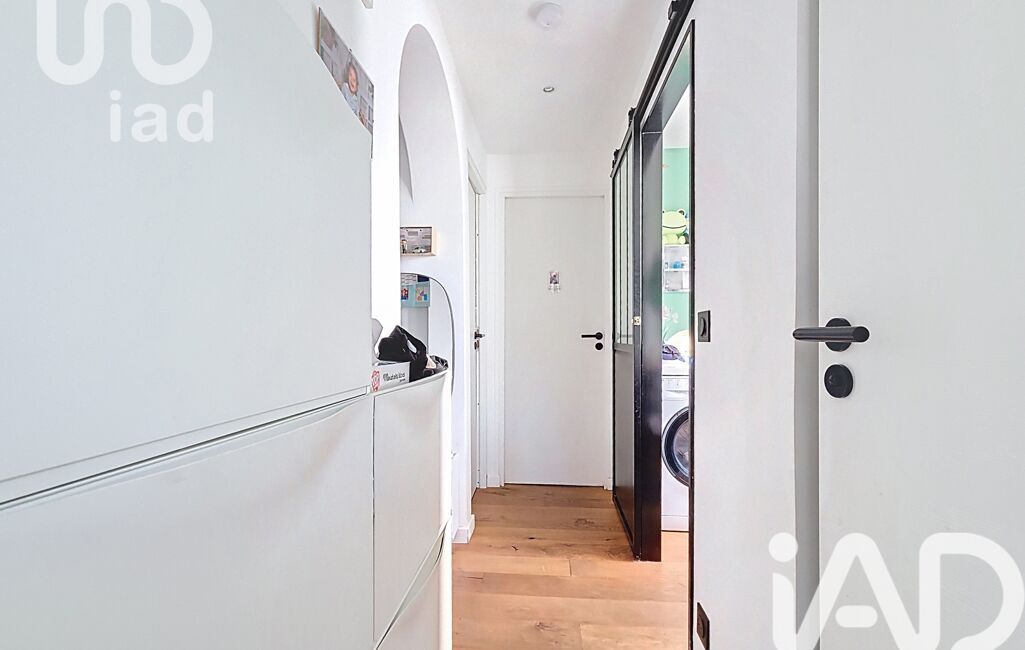 Entrée avec rangements, cuisine aménagée et équipée ouverte sur salon/salle à manger, coin bureau.