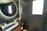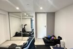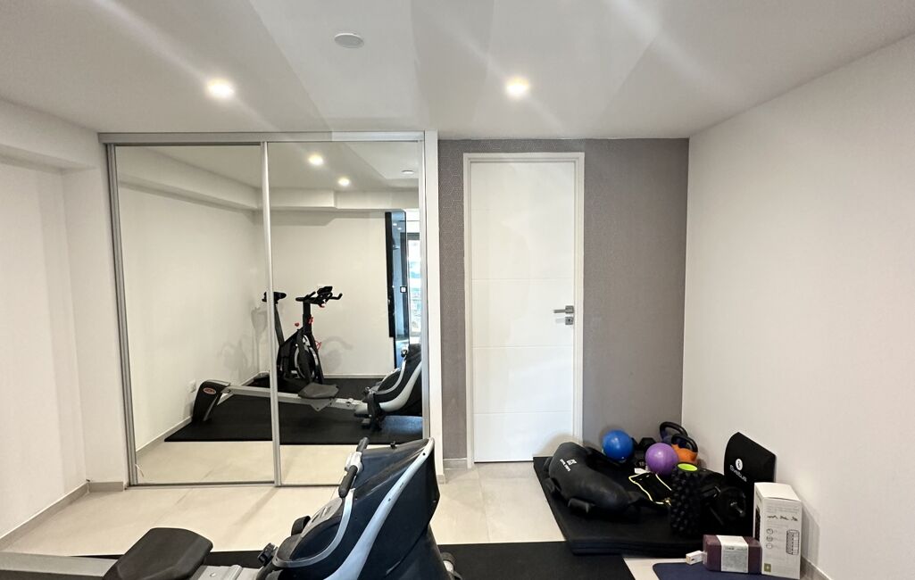 En rez-de-chaussée / niveau inférieur, un salon-séjour supplémentaire, une chambre, une salle d’eau ainsi qu’une pièce de sport entièrement aménagée.