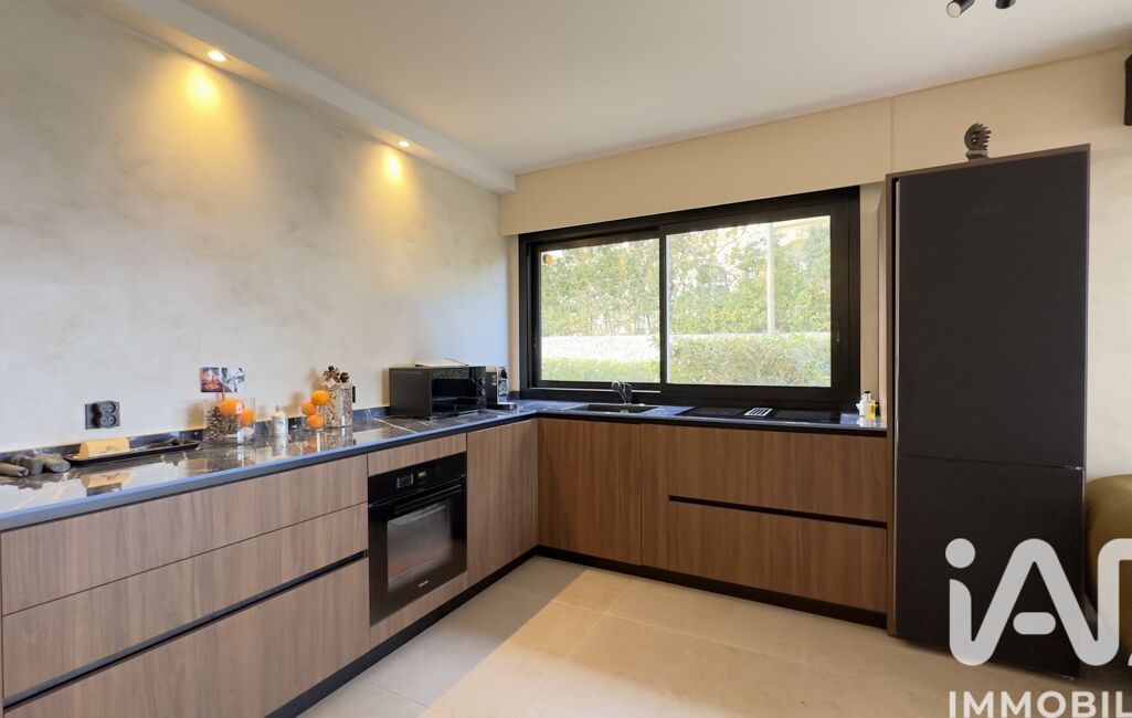 La maison dispose également d’une piscine semi-enterrée, équipée d’une pompe à chaleur et d’un système de nage à contre-courant. Une cuisine d’été, avec four à pizza, bar et évier en pierre de Cassis, complète parfaitement cet espace extérieur.