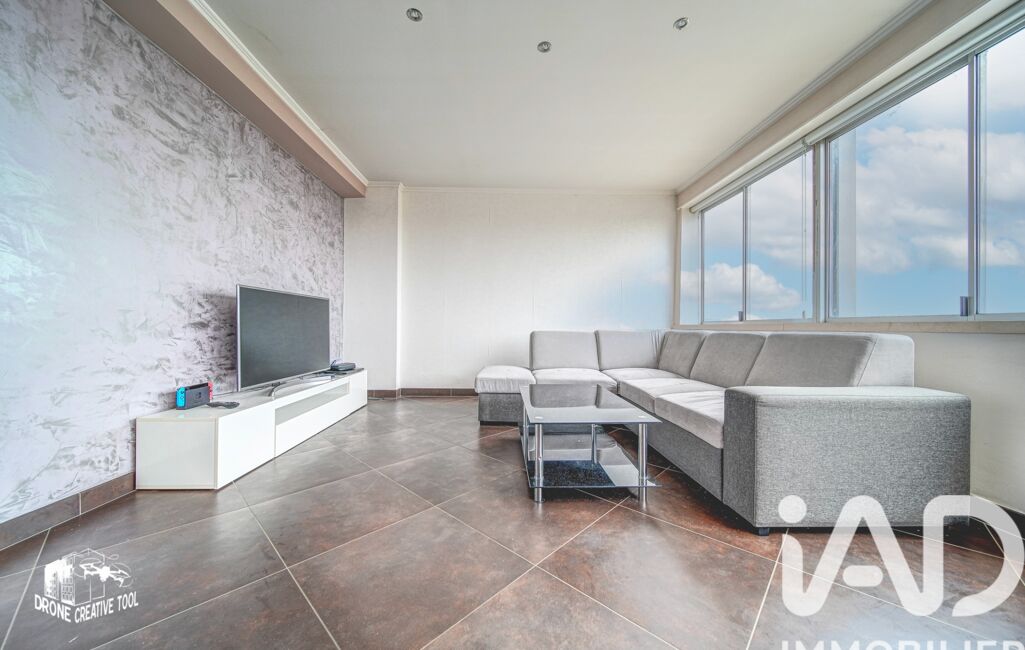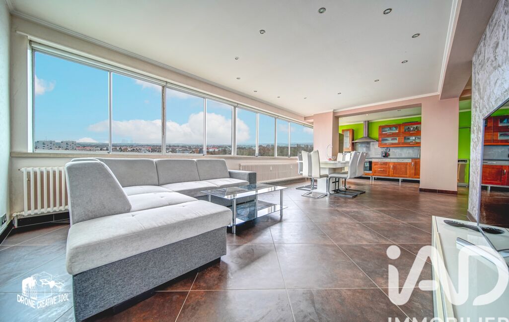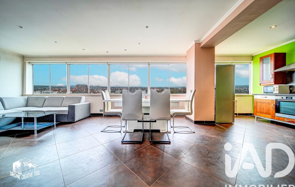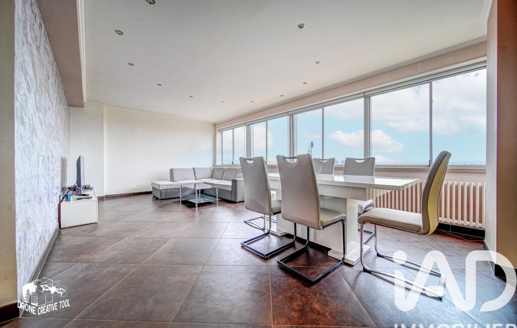 De larges fenêtres panoramiques sur toute la longueur du séjour offrent une belle luminosité naturelle et permettent de profiter pleinement de la vue dégagée sur Thionville.