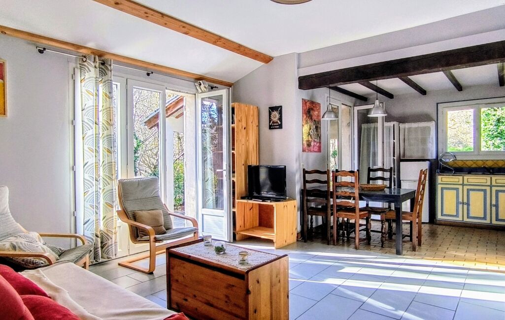 Le mas principal, ancienne bergerie toute rénovée vous offre un spacieux espace de vie de 60m2 avec cuisine ouverte toute équipée, donnant sur une terasse de 60m2 en partie couverte.