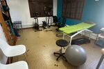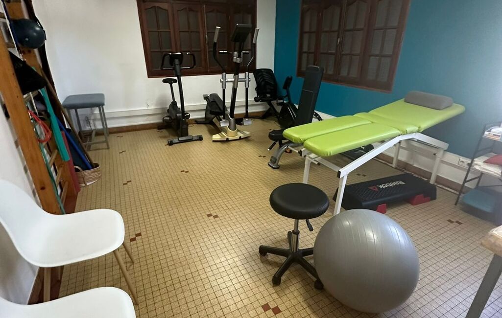 Au rdc, l'appartement est actuellement occupée par un service médical comprenant un accueil, des salles de soins, une cuisine, une salle d'eau et un wc indépendant. Enfin, une terrasse couverte de 20m2, sert actuellement de box pour garer les voitures.