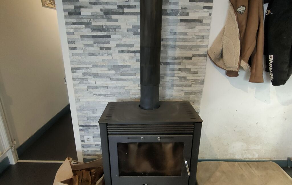 Double vitrage bois et volets PVC, 4 panneaux solaires, pompe à chaleur, poêle à bois, tout à l'égout .