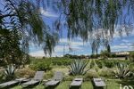 À l’extérieur, une grande terrasse ombragée, un bel espace piscine entouré d’un jardin aux essences méditerranéennes, un boulodrome et un parking pouvant accueillir 15 véhicules environ.