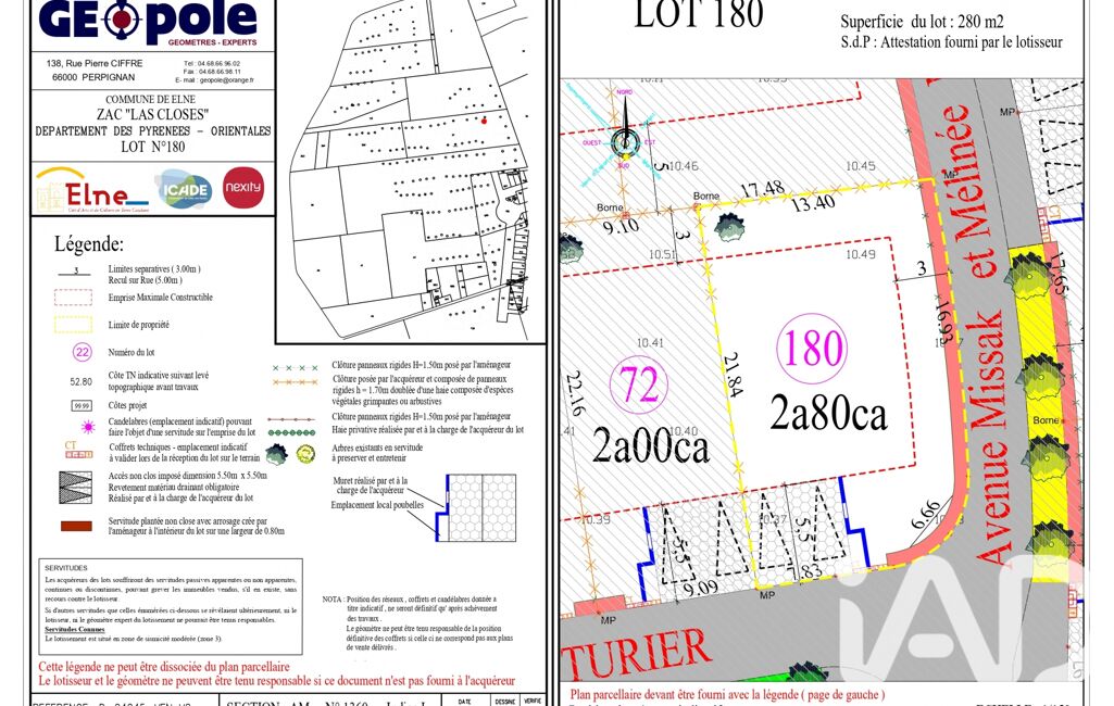 iad France - Franck Le Gall vous propose: Terrain à bâtir viabilisé – 280 m² – Elne, entre plages et Espagne