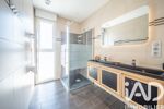 À l’étage, vous trouverez deux chambres mansardées de 15 m² et 18 m² au sol, un coin bureau, ainsi qu’une jolie salle d’eau avec double vasque et toilettes. Vous disposerez également d’une climatisation réversible pour plus de confort été comme hiver.