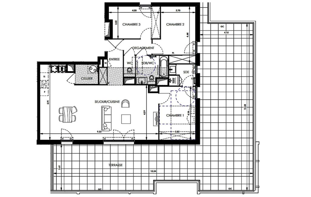 Situé au 3 ème étage, cet appartement T4 de 97 m² environ habitables se prolonge par une terrasse de 100 m² environ.
