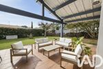 Cette pièce centrale s’ouvre naturellement sur une terrasse couverte, idéale pour prolonger les moments de vie vers l’extérieur.
