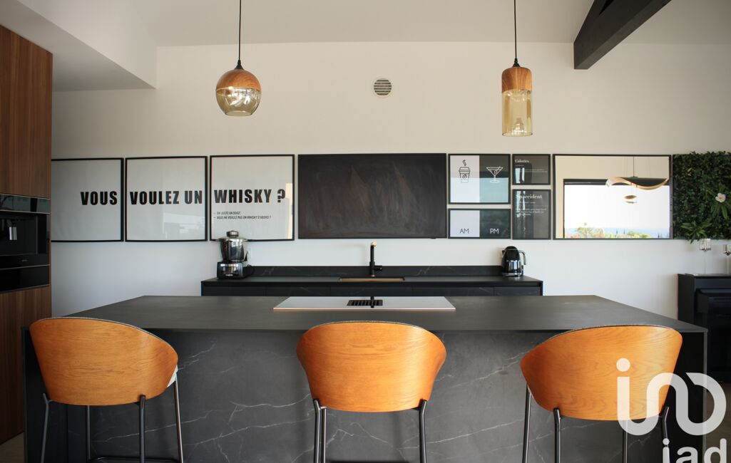 Édifiée sur un terrain de 1000 m², elle présente un espace jardin, restant à parfaire, ainsi qu'une sublime terrasse avec piscine. Sa position dominante privilégiée lui confère une vue dégagée remarquable, renforçant la sensation d’espace et de sérénité.