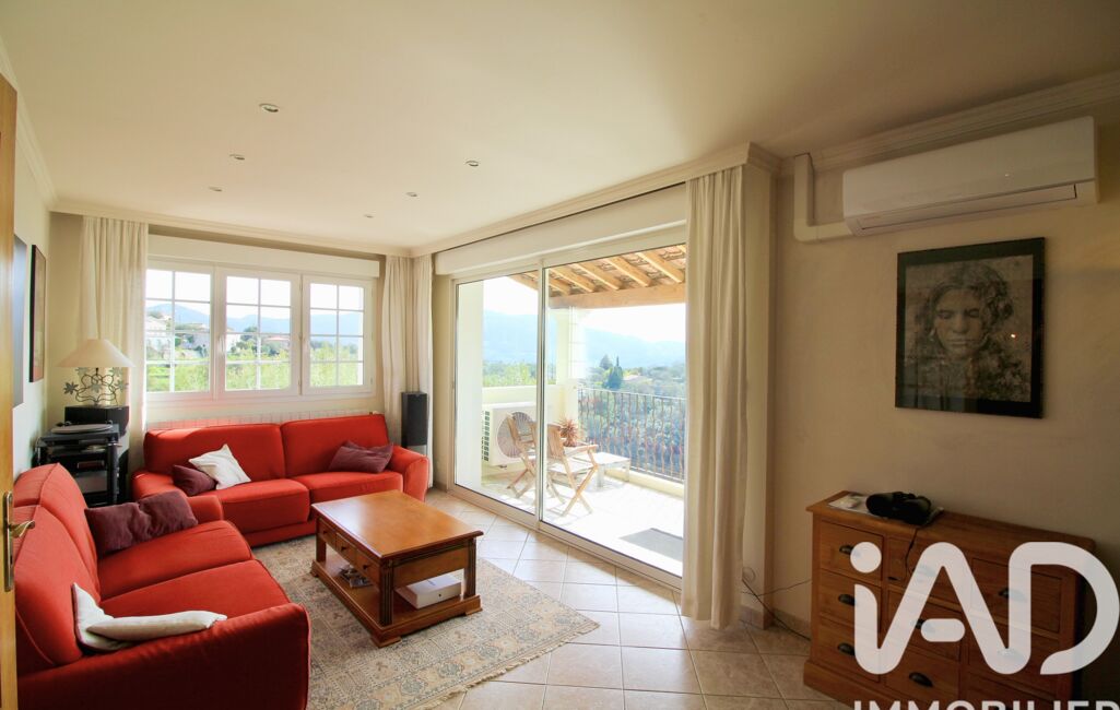 Un second salon avec cheminée s’ouvre sur une terrasse offrant une belle vue mer et collines.