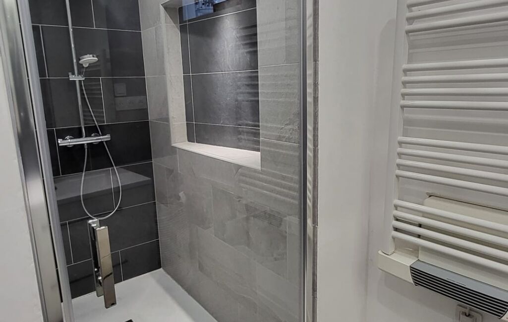 À l’étage, un palier dessert trois chambres ainsi qu’une salle d’eau récente avec douche et sèche-serviettes.