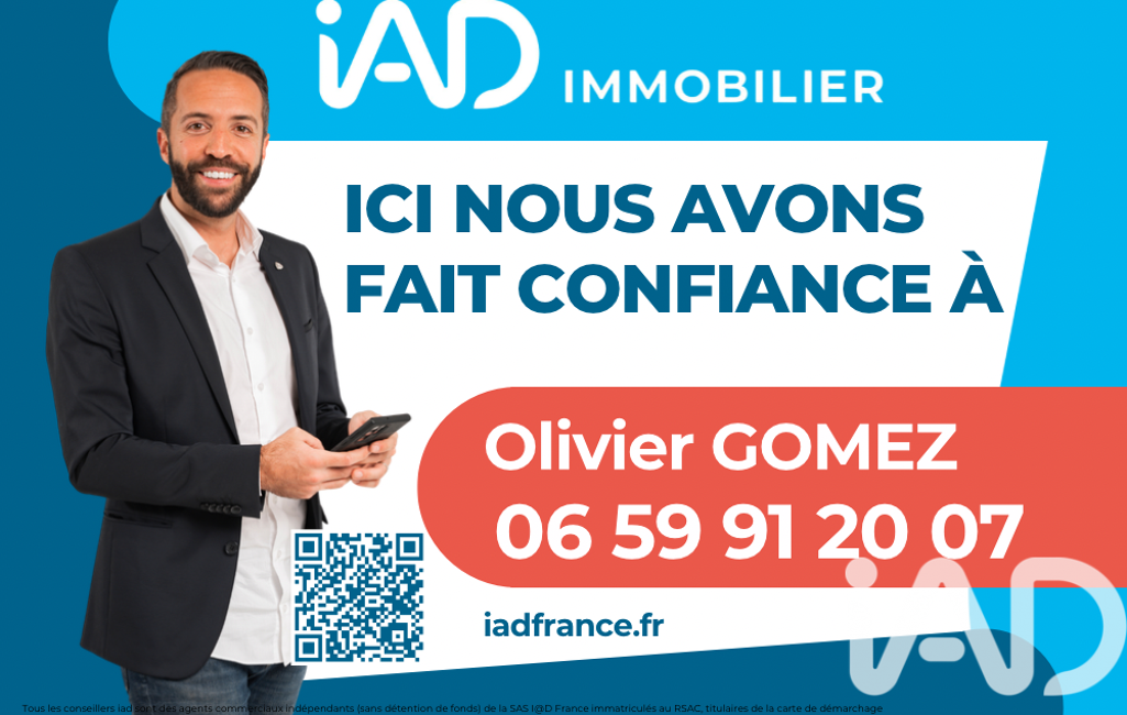 La présente annonce immobilière a été rédigée sous la responsabilité éditoriale de M Olivier Gomez mandataire indépendant en immobilier (sans détention de fonds), agent commercial de la SAS I@D France immatriculé au RSAC de MARSEILLE sous le numéro 931300883, titulaire de la carte de démarchage immobilier pour le compte de la société I@D France SAS.